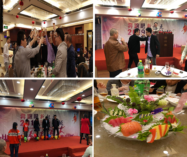 抽獎環節結束后,是美味的大餐和高純的美酒。整個會餐期間,不僅有歡聲笑語,祝酒聲也此起彼落,胡總、吳總還發動了多輪搶紅包大獎,把年會的氣氛推向了高潮。