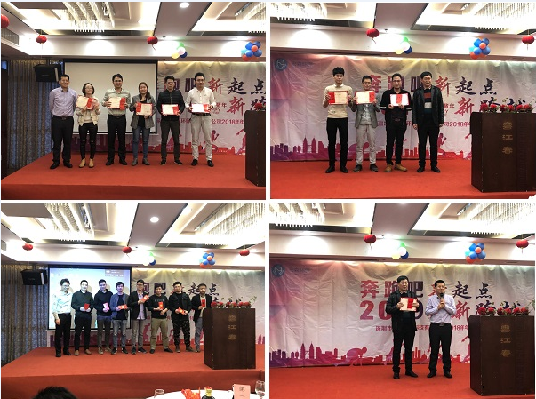 年度工作報告結束后,激動人心的時刻到來了,胡總、吳總等公司高層領導為獲得"年度優秀管理者獎"、"年度優秀宏森人獎"、"年度銷售團隊冠軍獎"、"優秀員工獎"、"榮譽職工代表者獎"等獲獎者頒發了相應的獎金與獎狀。